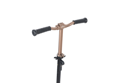 Алюминиевый руль шириной 48 см оснащен специальным зажимом для исключения люфта в местах крепления ручек. Самокат поставляется в двух модификациях рукояток - с анатомическими грипсами и с грипсами BarTape (в виде "намотки"). Руль фиксируется в четырех положениях - от 94 до 109 см от поверхности. Предусмотрена возможность крепления ремешка для переноски.