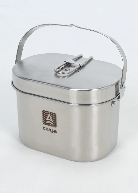 Туристический кан для приготовления пищи в походных условиях из прочной нержавеющей стали.