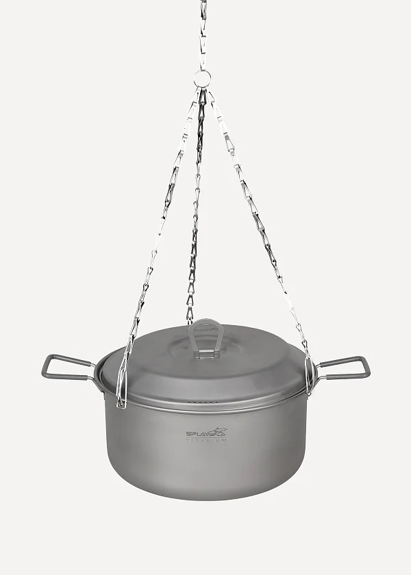 «Костровой трос титановый сборный» подходит не только для ведер, котелков и канов, имеющих ручку для их подвешивания, но и для кастрюль или кружек.